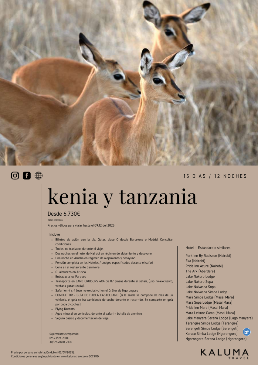 Kenia y Tanzania 15 Días / 12 Noches Salidas hasta Diciembre desde 6.730 €