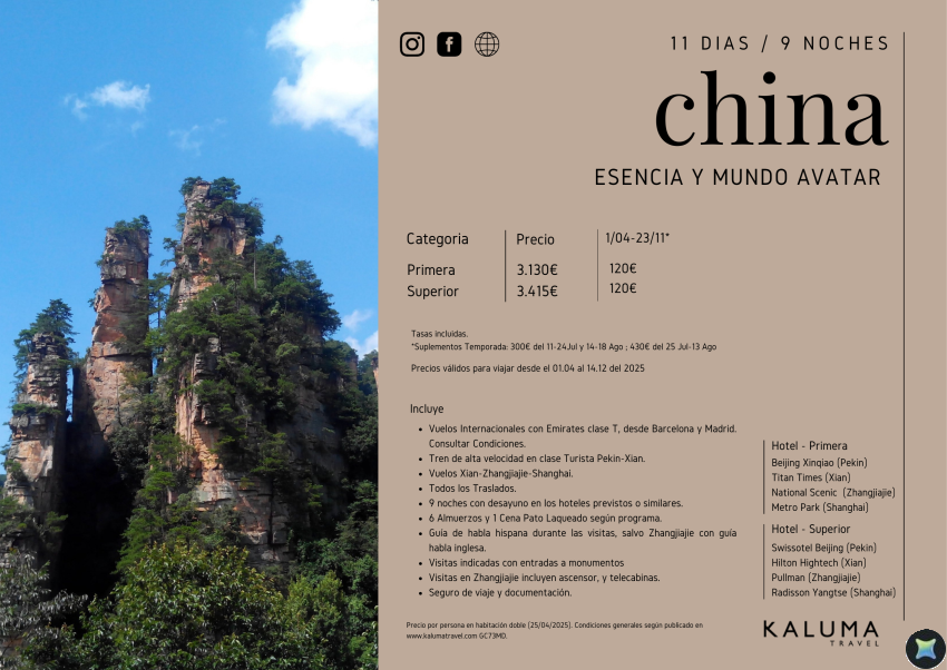 Esencia de China y Mundo Avatar 12 días / 9 noches - Salidas hasta Diciembre desde 3.130€