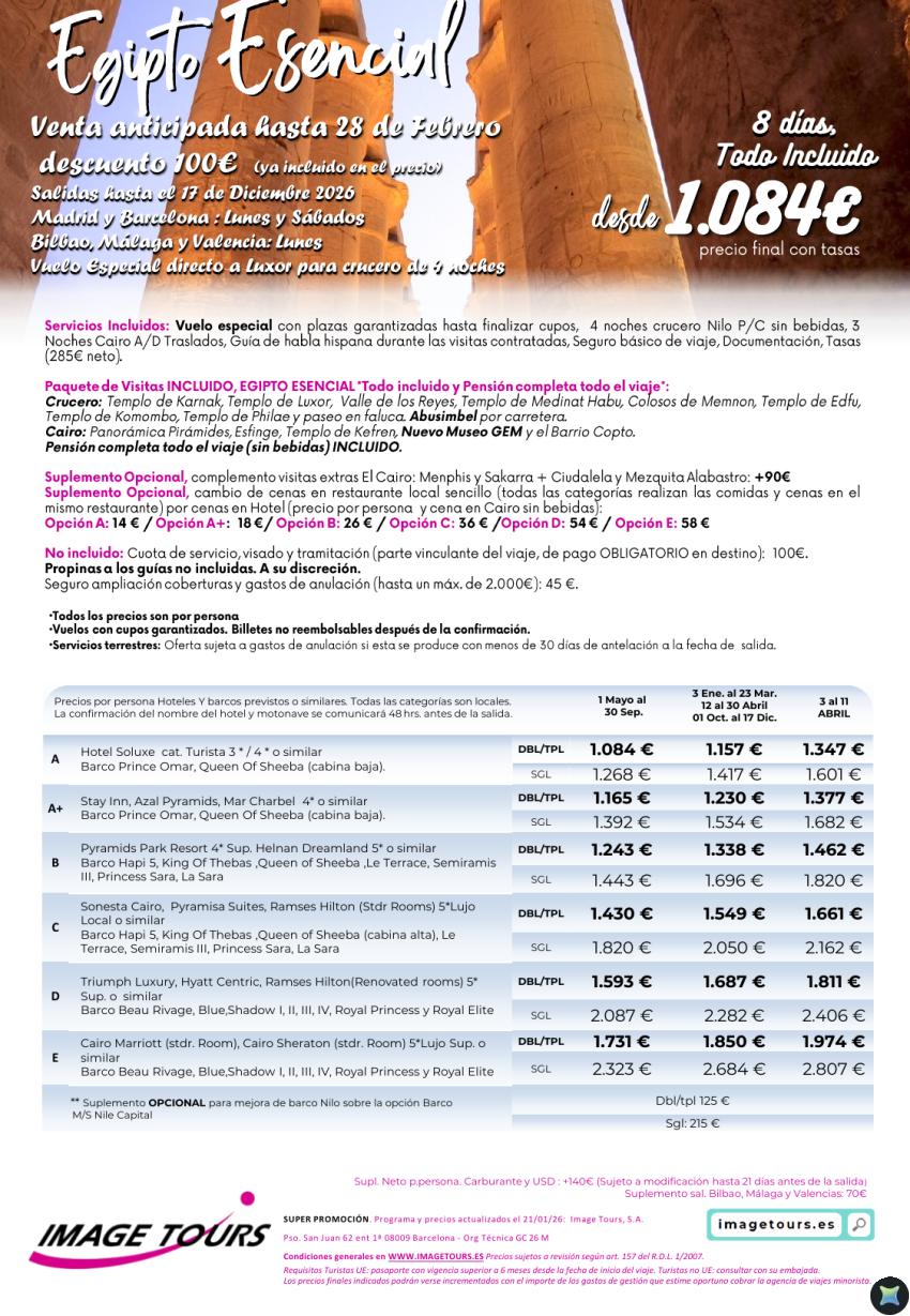 Egipto Esencial hasta sept 2026 ¡8 días con Visitas y plazas garantizadas! Venta Anticipada desde 1.084€